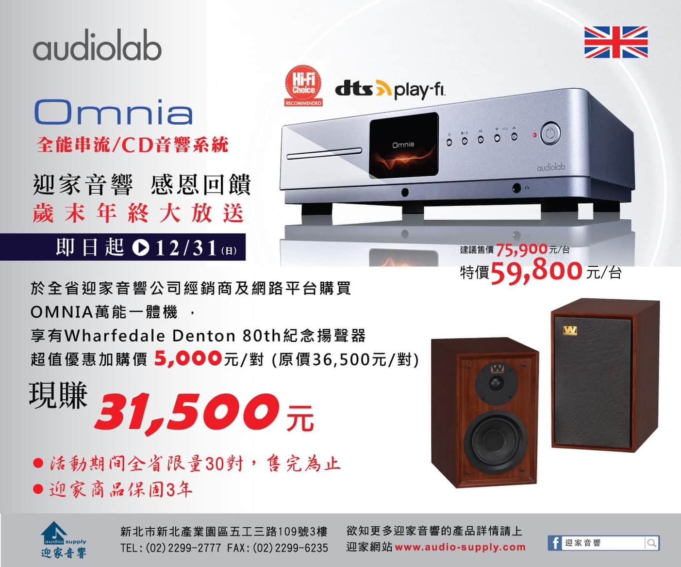 迎家音響 歲末年終 感恩回饋大放送 Audiolab OMNIA 搭配 Wharfedale Denton 80th紀念揚聲器