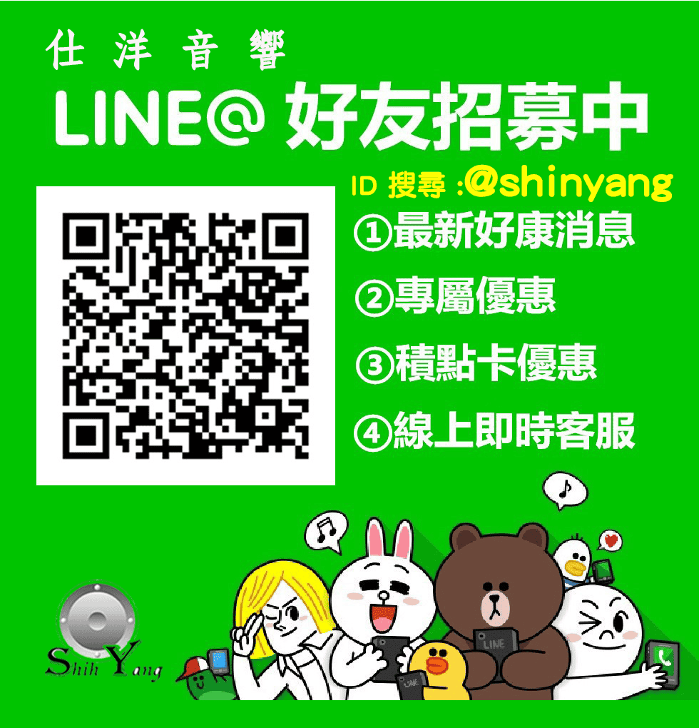 仕洋音響 正式推出 LINE官方帳號, 之後會透過LINE的動態消息在第一時間和大家分享 >>加入方式: 1.直接掃描QR code加入好友 2.打開LINE,搜尋帳號名稱、ID 帳號名稱:仕洋音響 ID:「@shinyang」(需包含@)即可加入 也會不定期出現好康優惠或是驚喜小禮,快來和仕洋成為Line好友哦!