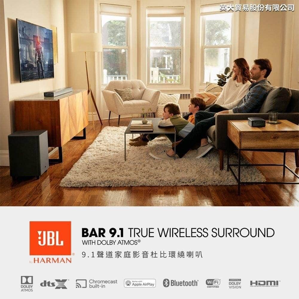 憑藉兩個分離式環繞聲喇叭和 Dolby Atmos® 和DTS:X™ 3D 聲音的震撼力,JBL Bar 9.1 把電影院音響體驗搬入您的家中。以 820 W 的總系統功率,讓您感受到如同親臨奧斯卡頒獎典禮的音響體驗。10" 重低音喇叭,帶給您令人振奮的強勁低音。也可以透過 Chromecast 和 Airplay 音樂串流傳輸放鬆自我。不管是沉浸在最新推出的熱門電影中,或是重現您最愛影片或體育賽事,讓您驚艷不已的家庭影院音響就在此處。