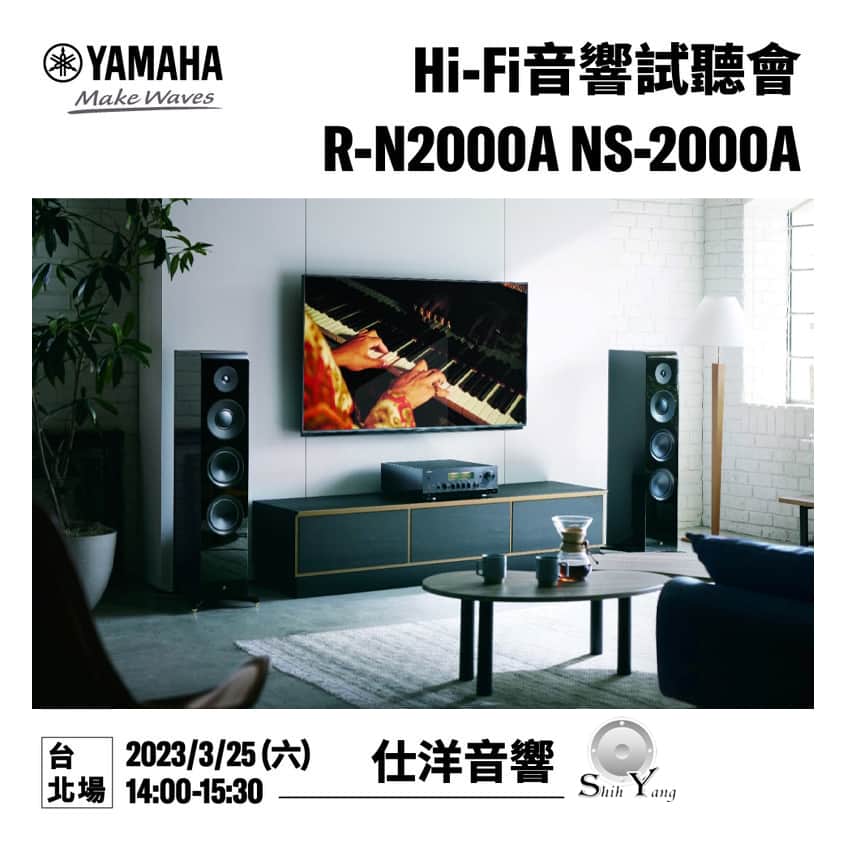 【YAMAHA Hi-Fi音響試聽會來囉!立即私訊粉絲團報名】 詢問度爆的R-N2000A、NS-2000A,現場盡情體驗! 試聽會於三月登場 位置有限,欲報名的朋友請即刻私訊小編,完成報名~ YAMAHA Hi-Fi音響試聽會活動資訊 地點 : 仕洋音響(台北市中正區漢口街一段108號) 時間 : 3/25 14:00-15:30 活動內容 普洛影音網 音響論壇/新視聽 劉漢盛總編精彩講座 講解產品:網路串流擴大機R-N2000A和落地型揚聲器NS-2000A