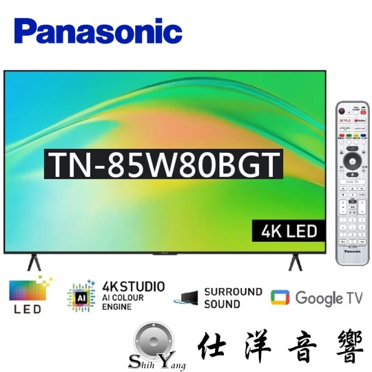 Panasonic TN-85W80BGT 智慧聯網電視 GOOGLE TV【公...