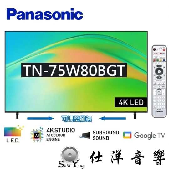 Panasonic TN-75W80BGT 智慧聯網電視 GOOGLE TV【公...