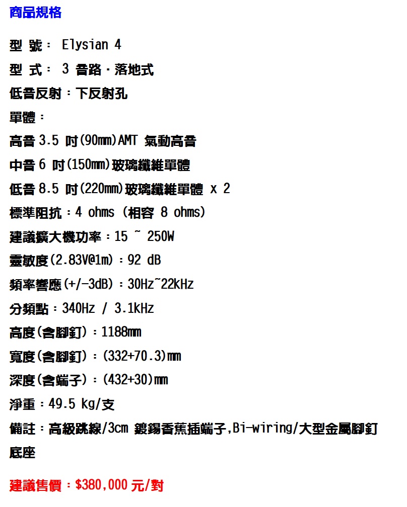 Wharfedale Elysian 4 旗艦系列 落地喇叭 【迎家公司貨三年保固】