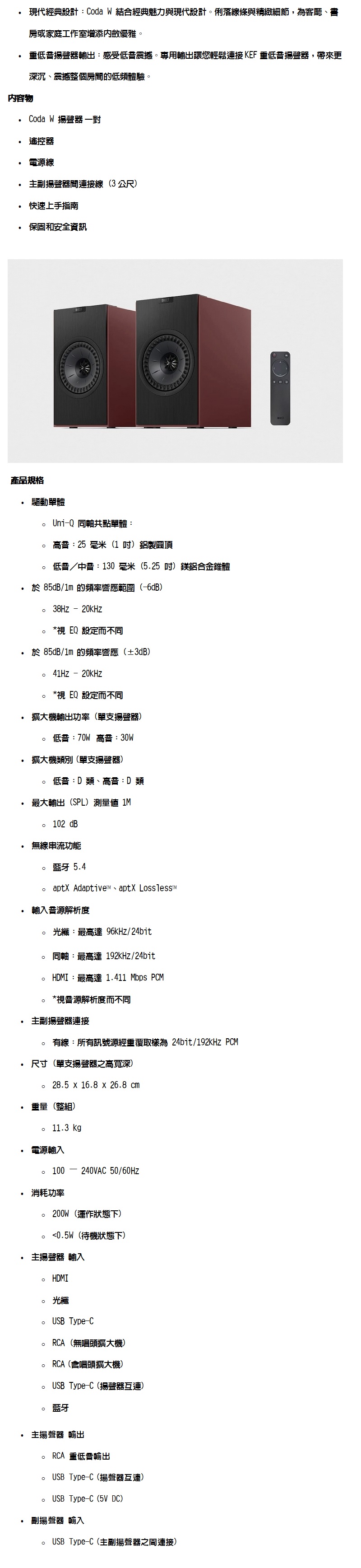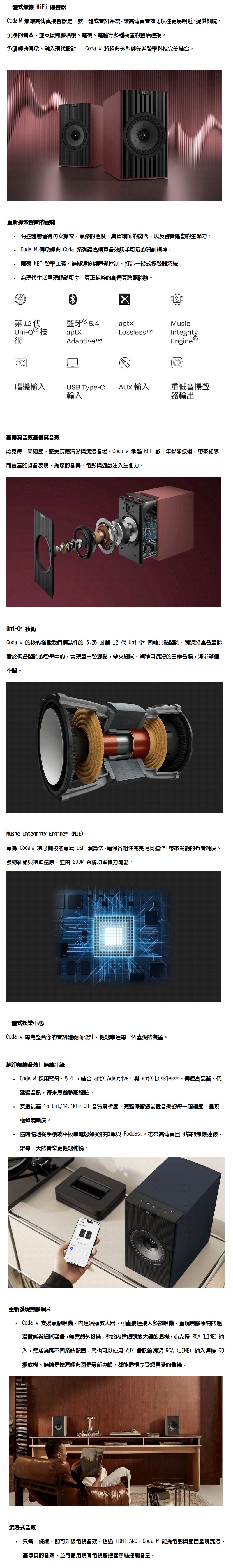 KEF Coda W 藍芽無線主動式喇叭【鍵寧公司貨保固】