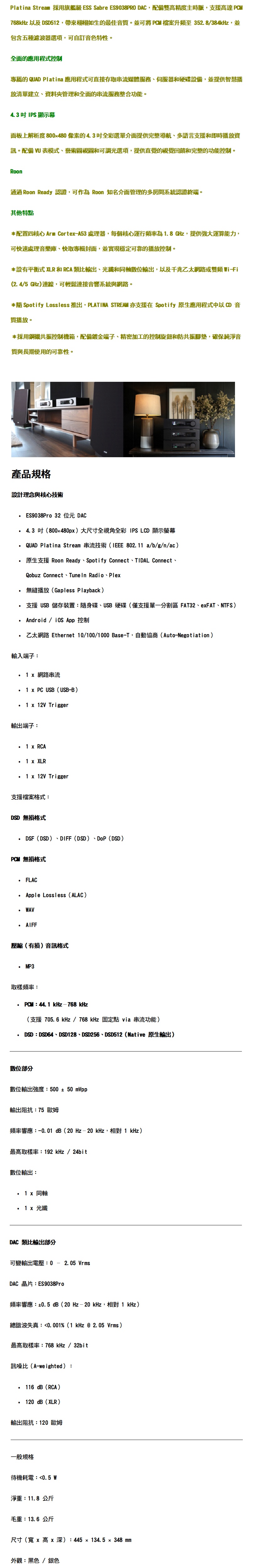 QUAD Platina Stream 白金串流播放機【迎家公司貨三年保固】