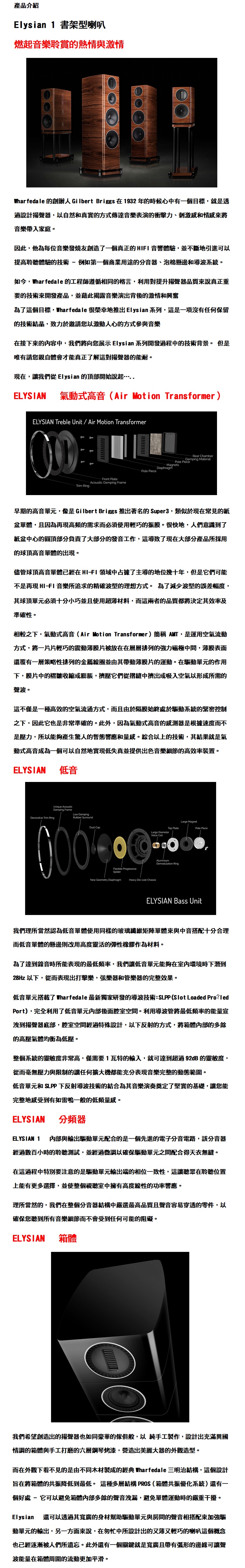 Wharfedale Elysian 1 旗艦系列 書架喇叭 【迎家公司貨三年保固】