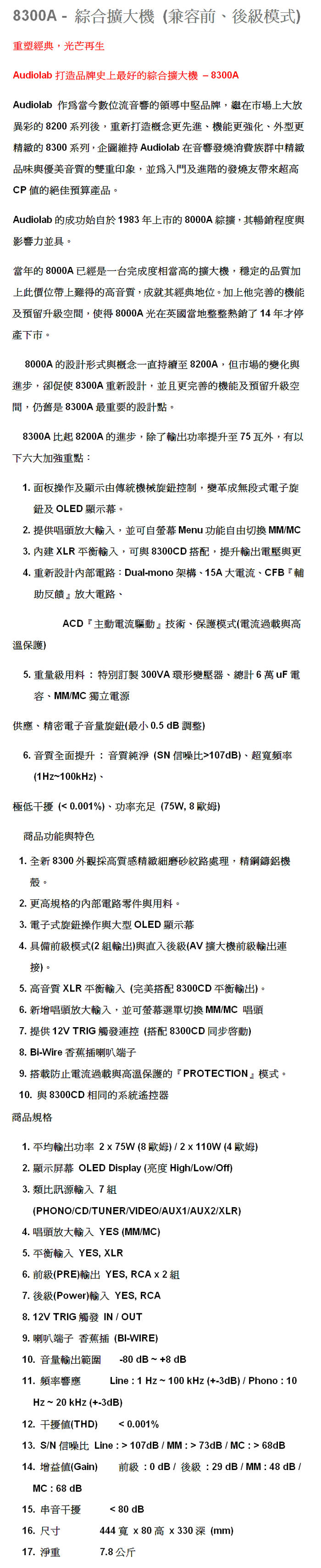 Audiolab 8300A 綜合擴大機【迎家公司貨三年保固】