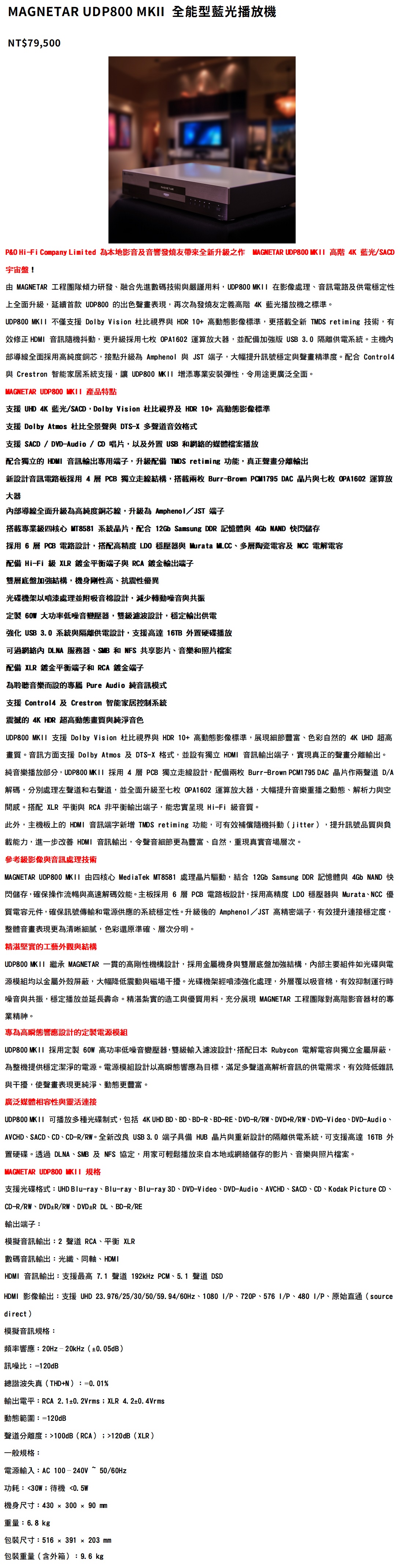 MAGNETAR UDP800 MKII 全能型藍光播放機【公司貨保固】