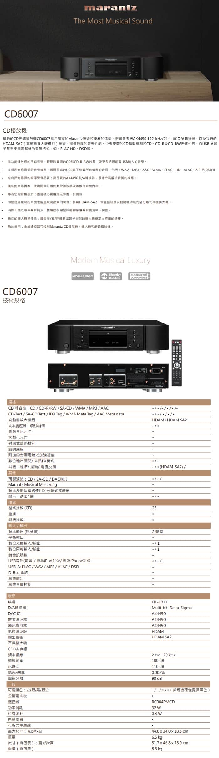 Marantz CD6007 CD播放機【環球知音公司貨保固】