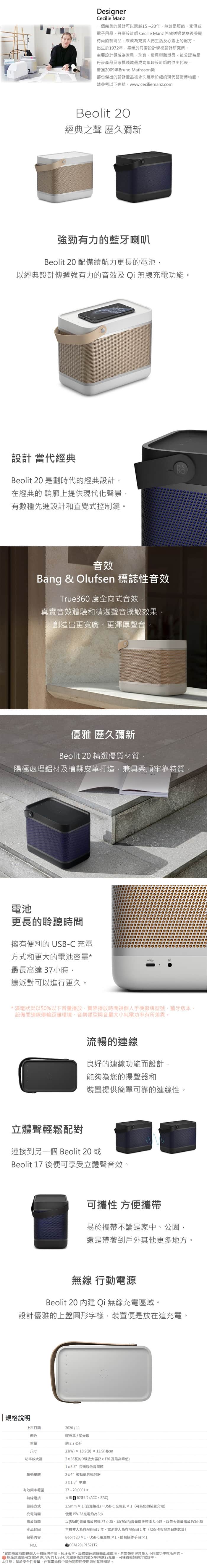 B&O Beolit 20 藍芽喇叭【公司貨保固】