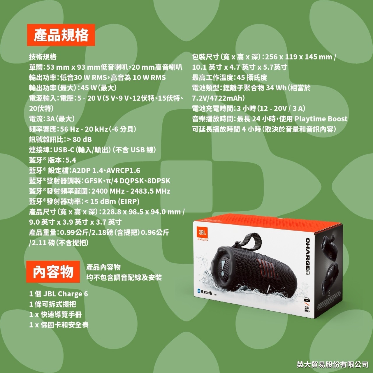 JBL Charge 6 可攜式藍牙喇叭【英大公司貨保固】